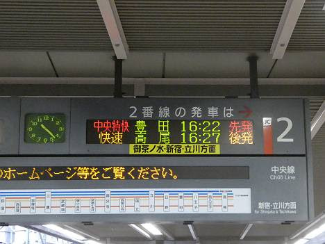 更に2023年10月21日(土)は中央線へのグリーン車導入に伴う高尾駅配線工事の影響で、終日変則ダイヤを組み、定期設定のない中央特快相模湖行きが1本、中央特快八王子行きが24本、中央特快豊田行きが4本、快速相模湖行きが4本設定されました。